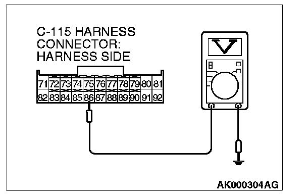 STEP 6. Measure the sensor supply voltage at ECM connector C-115 by backprobing.