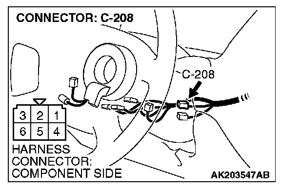 STEP 14. Check for harness damage between ignition switch connector C-208 (terminal No.2) and vehicle speed sensor connector B-04 (terminal No.1).