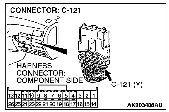 STEP 8. Check harness connector C-121 at ECM for damage.