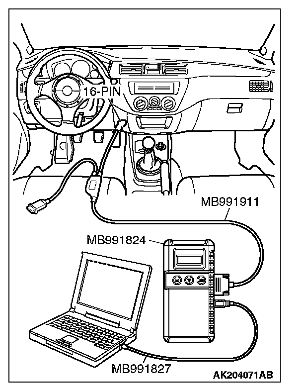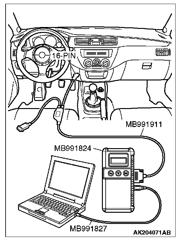 1. Connect scan tool MB991958 to the data link connector.