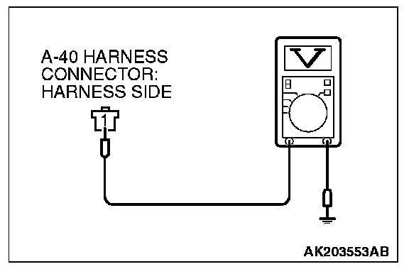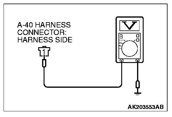 STEP 2. Measure the power supply voltage at power steering pressure switch connector A-40 by backprobing.
