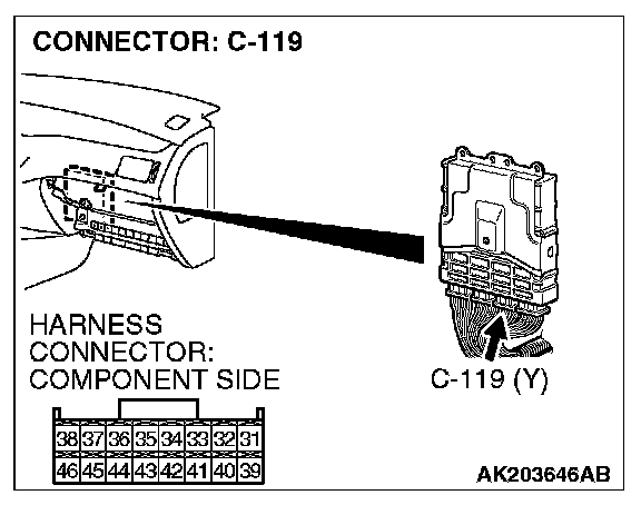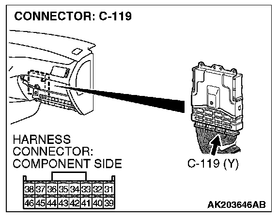 STEP 9. Check harness connector C-119 at ECM for damage.
