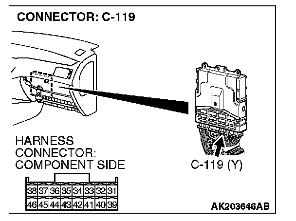 STEP 8. Check harness connector C-119 at ECM for damage.