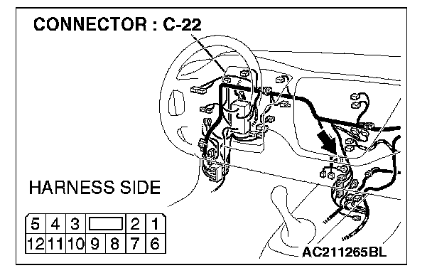 STEP 2. Check at immobilizer-ECU connector C-22 in order to check the immobilizer indicator light circuit.