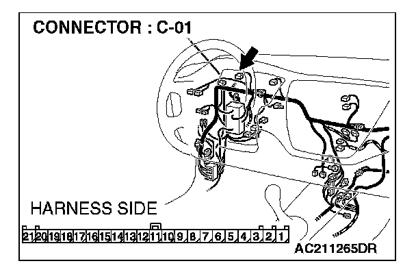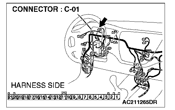 STEP 5. Check combination meter connector C-01 for loose, corroded or damaged terminals, or terminals pushed back in the connector.