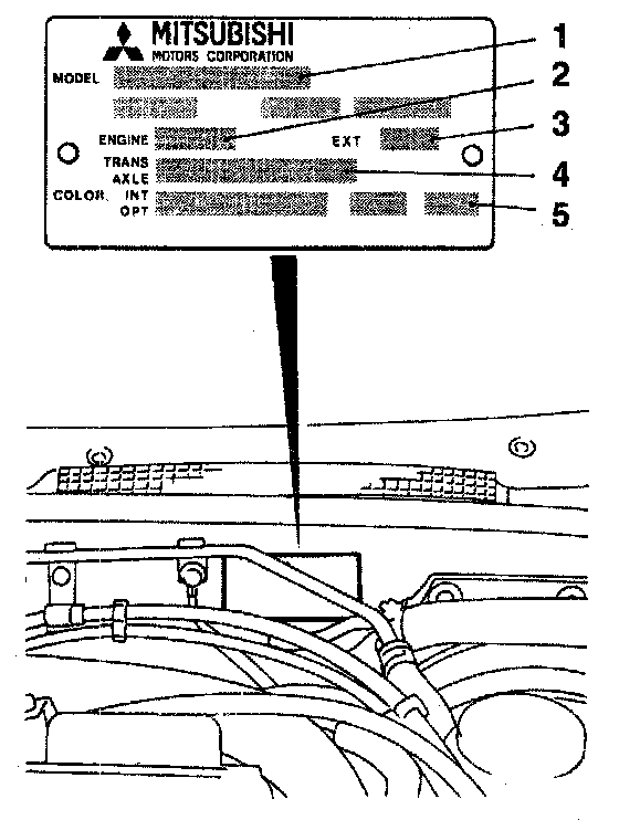 The place shows model code, engine model, transaxie model, and body color code.