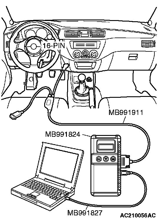 1. Connect scan tool MB991958 as shown in the illustration.