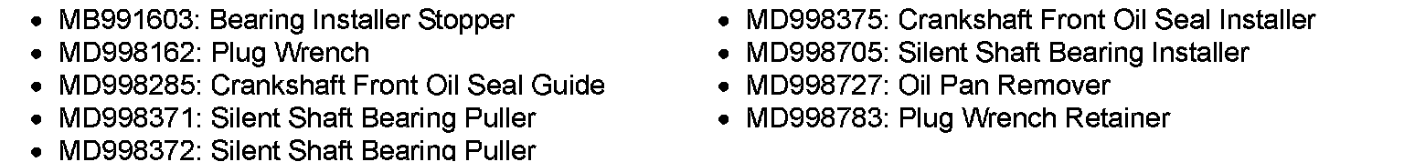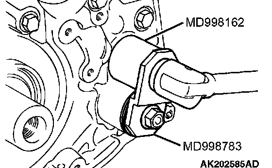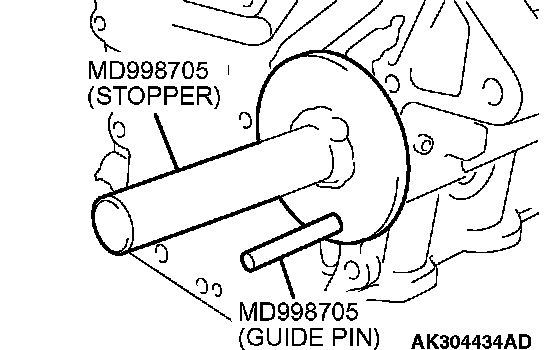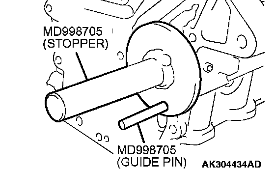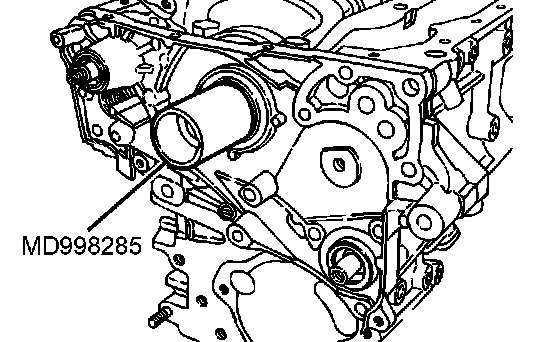 1. Set special tool MD998285 on the front end of crankshaft and apply a thin coat of engine oil to the outer surface of special tool MD998285.