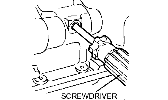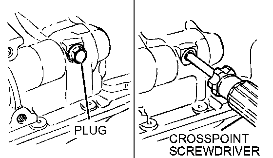 1. Insert a Phillips head screwdriver [shank diameter 8 mm (0.3 inch)] into the hole in the left side of the cylinder block to lock the counterbalance shaft.