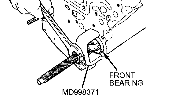 Using special tool MD998371, remove the counterbalance shaft front bearing from the cylinder block.
