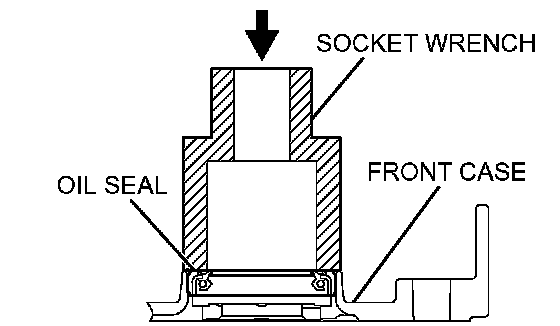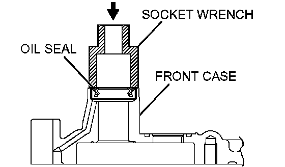 Using a suitable socket wrench, install the oil pump oil seal into the front case.
