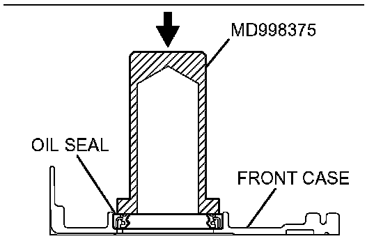 Using special tool MD998375, install the crankshaft front oil seal into the front case.