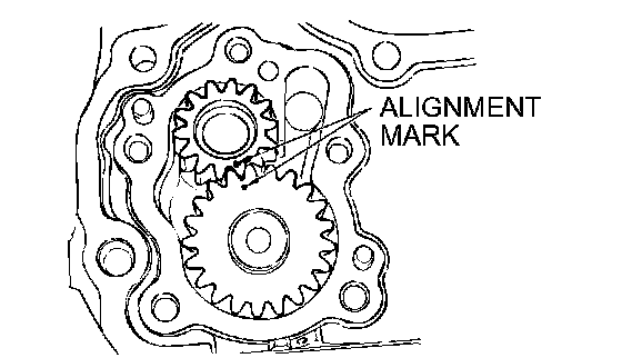 Install the oil pump gears into the front case and line up the alignment marks.