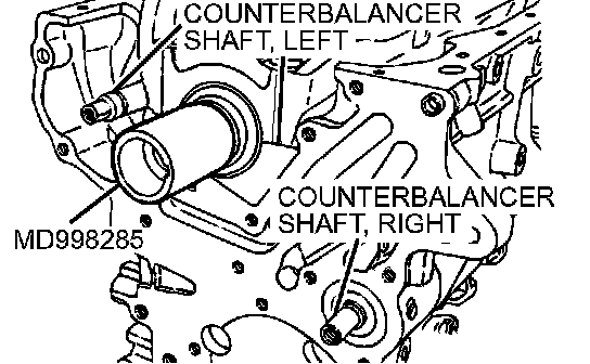 2. Using special tool MD998372, remove the right counterbalance shaft rear bearing from the cylinder block.