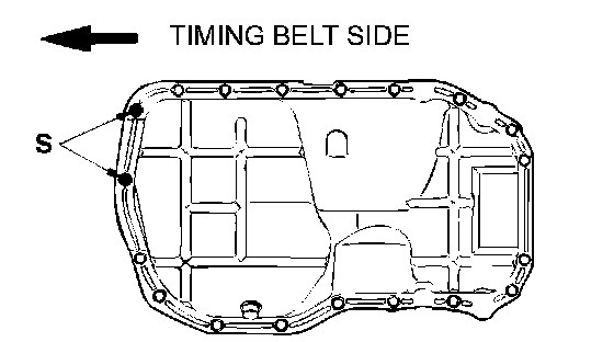 4. Fit an 8 mm (0.30 inch) long bolt in each of the two holes identified by the letter "S" in the illustration and a 10 mm (0.39 inch) long bolt in each of the remaining 17 holes. Tighten all bolts to the specified torque.