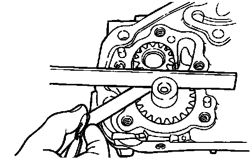 2. Measure the gear side clearance using a straight edge and thickness gauge.