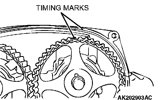 NOTE: If the timing marks were aligned, the exhaust camshaft would be turned counterclockwise by one sprocket tooth and stay there by the force of the valve springs.