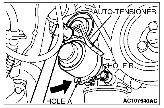2. Align hole A with hole B, insert an L-shaped hexagon wrench, etc. to fix and then remove the drive belt.