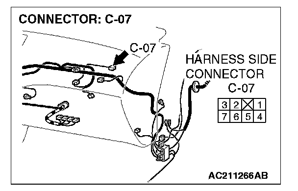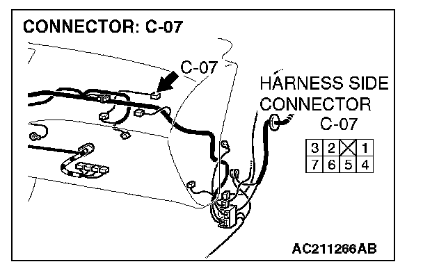 STEP 4. Check outside/inside air selection damper control motor connector C-07 for loose, corroded or damaged terminals, or terminals pushed back in the connector.