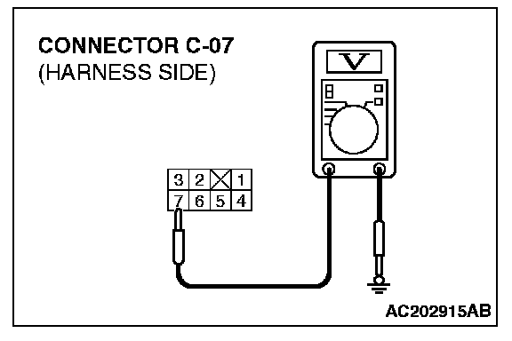 STEP 3. Measure the voltage at outside/inside air selection damper control motor connector C-07.