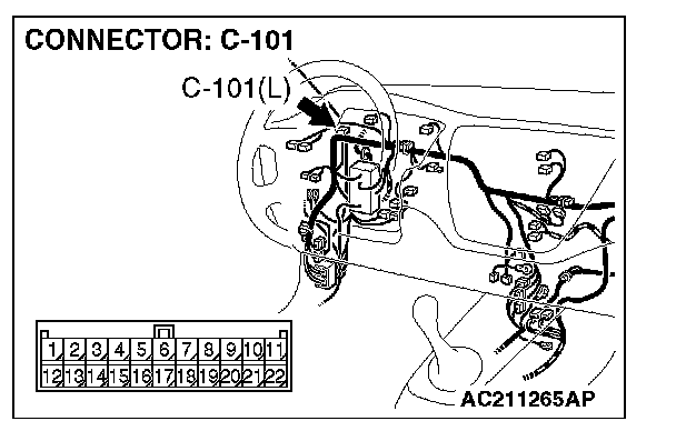 NOTE: Also check intermediate connector C-10, joint connector 2. C-101, junction block connectors C-210 and C-211 for loose, corroded, or damaged terminals, or terminals pushed back in the connector. If intermediate connector C-10, joint connector 2. C-101, junction block connectors C-210 or C-211 is damaged, repair or replace the connector as described in Harness Connector Inspection.