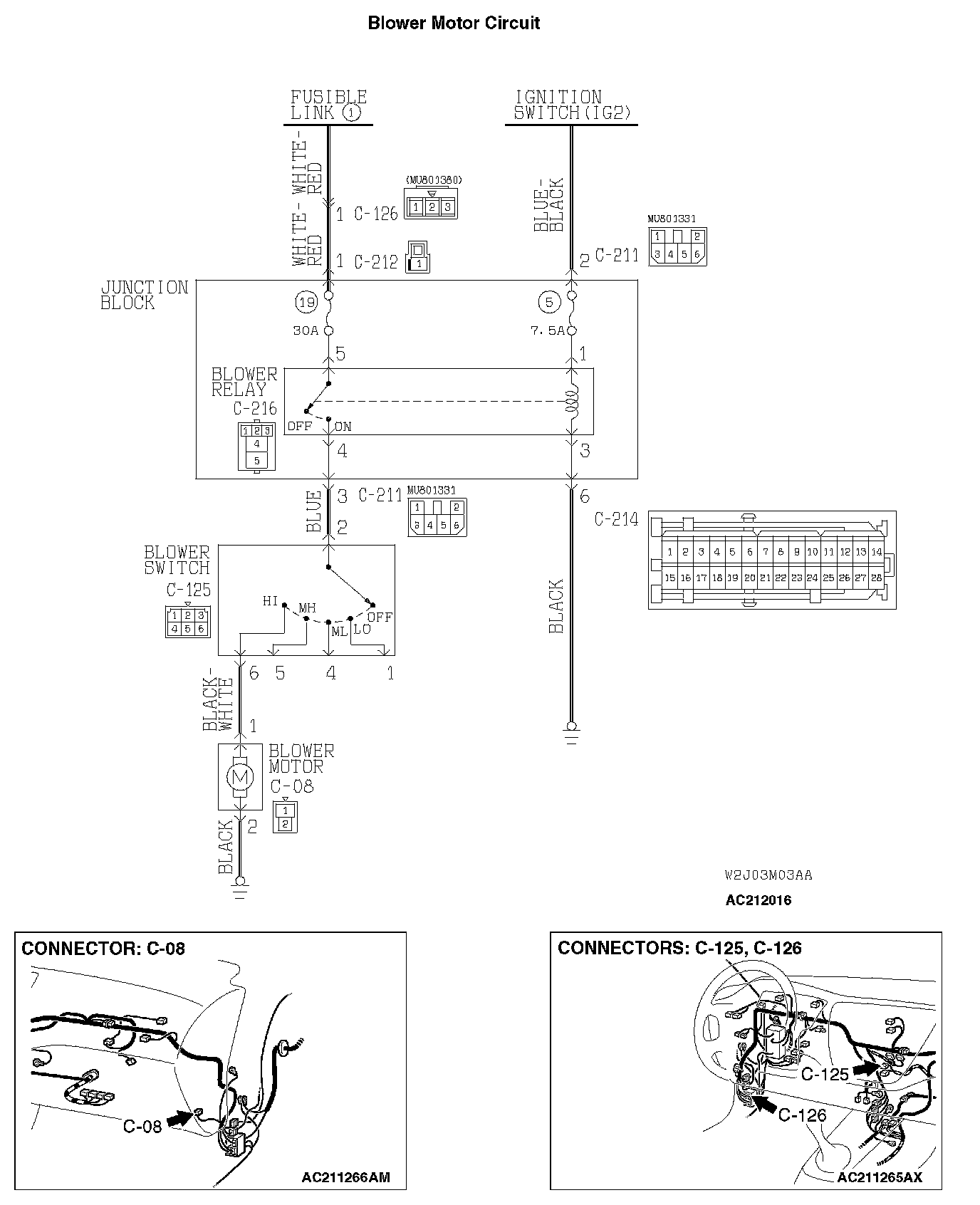 Q: Is blower switch connector C-125 and blower relay connector C-216 in good condition?