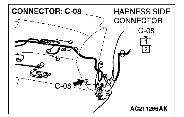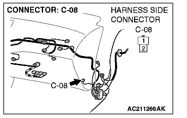 1. Disconnect blower motor connector C-08, and measure the voltage at the wiring harness side.