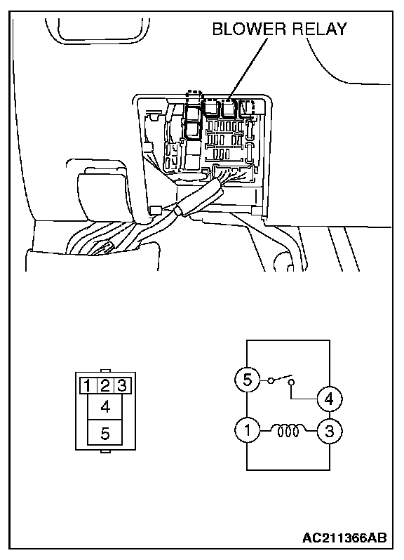 STEP 11. Check the wiring harness between blower relay connector C-216 (terminal 5) and fusible link (1).
