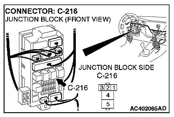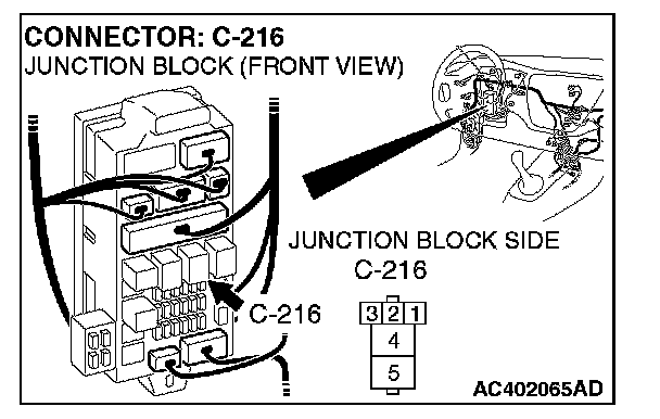 1. Disconnect connector C-216, and measure the resistance at the junction block side.