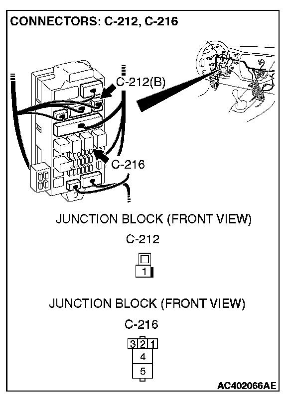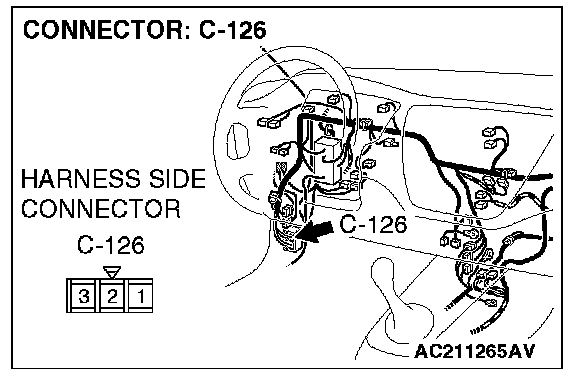 NOTE: Also check intermediate connector C-126 and junction block connector C-212 for loose, corroded, or damaged terminals, or terminals pushed back in the connector. If intermediate connector C-126 and junction block connector C-212 is damaged, repair or replace the connector as described in Harness Connector Inspection.