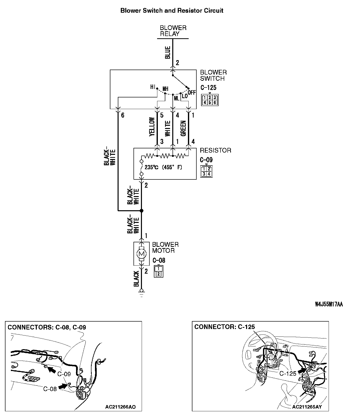 Q: Are blower switch connector C-125 and resistor connector C-09 in good condition?