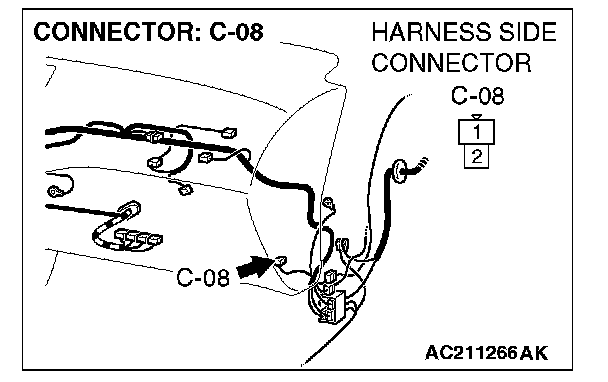 STEP 9. Check the wiring harness between blower motor connector C-08 (terminal 1) and resistor connector C-09 (terminal 2).