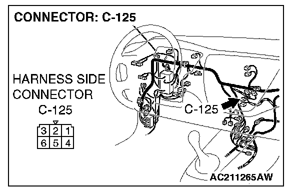 STEP 3. Check the wiring harness between blower switch connector C-125 (terminal 6) and blower motor connector C-08 (terminal 1).
