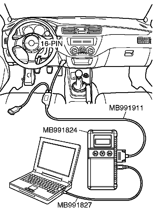 CAUTION: To prevent damage to scan tool MB991958,always turn the ignition switch to the LOCK (OFF) position before connecting or disconnecting scan tool MB991958.