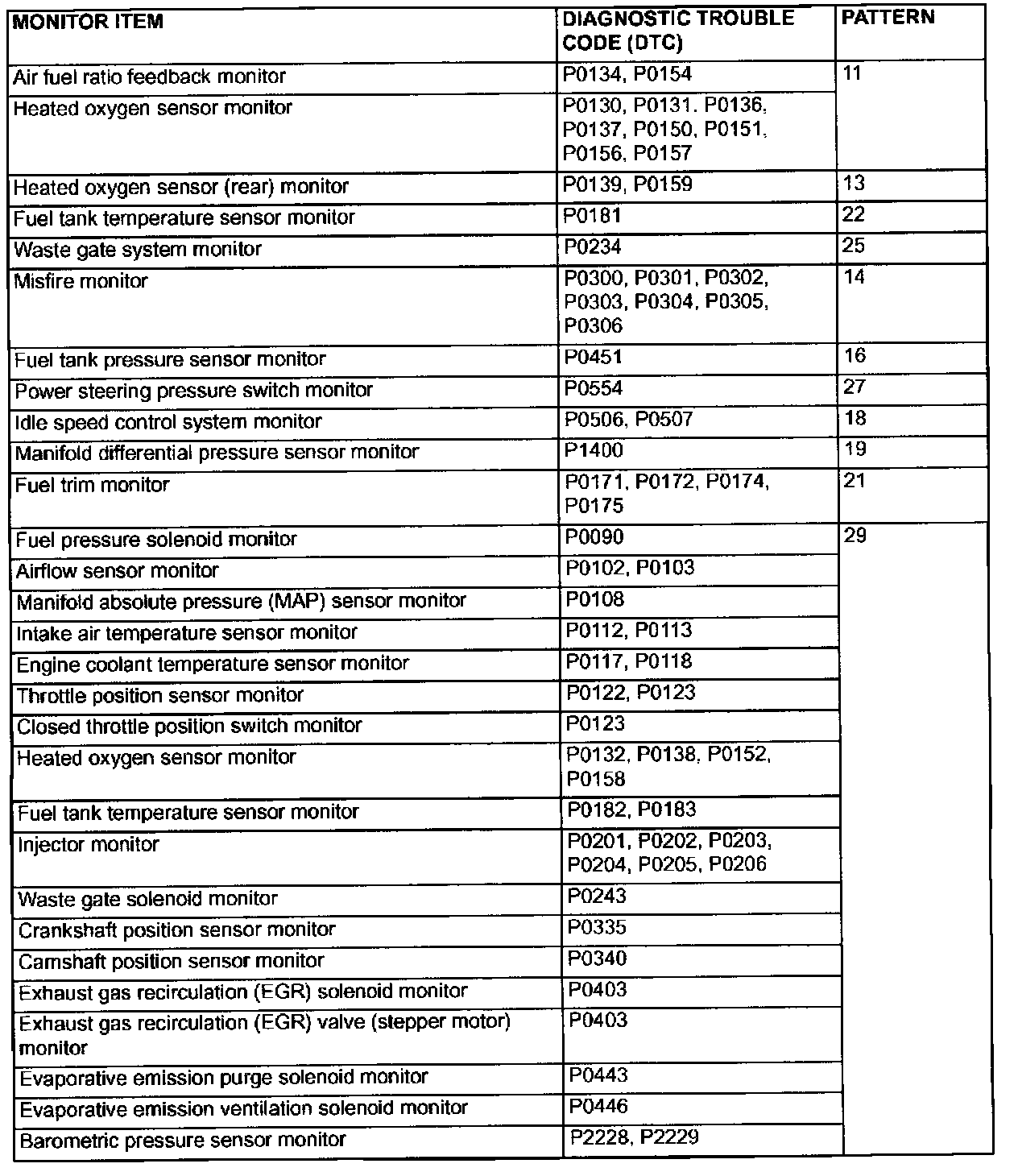 Drive cycle patterns are not established for Vehicle speed sensor monitor (DTC P0500) Closed throttle position switch monitor (DTC P0510). Power steering pressure switch monitor (P0551). Please reference the MUT data list to judge whether these monitor items are normal.