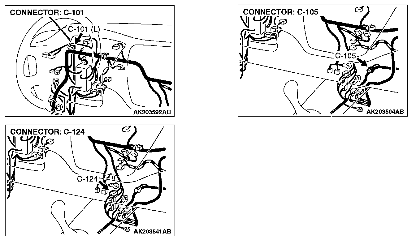 NOTE: Check harness after checking intermediate connectors C-101 C-105 and C-124. If intermediate connectors are damaged repair or replace them. Refer to Harness Connector Inspection. Then check that the malfunction is eliminated.