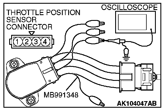 2. Connect the oscilloscope probe to the throttle position sensor side connector terminal.
