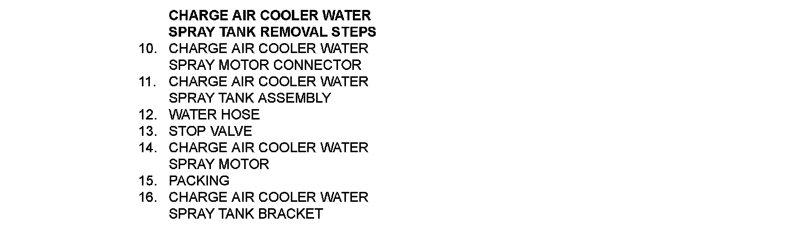 1. Check the charge air cooler water spray motor with the charge air cooler water spray tank attached after the tank is supplied with water.
