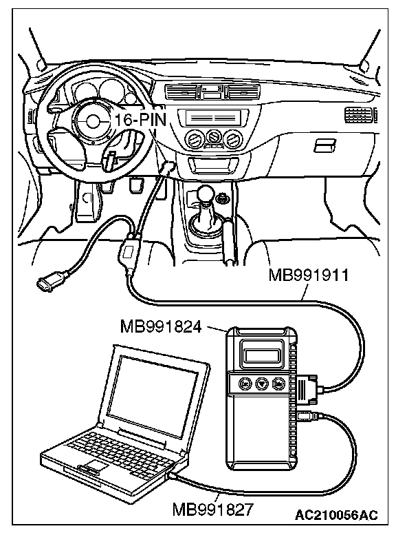 3. Connect special tool MB991827 to special tool MB991824 and the personal computer.
