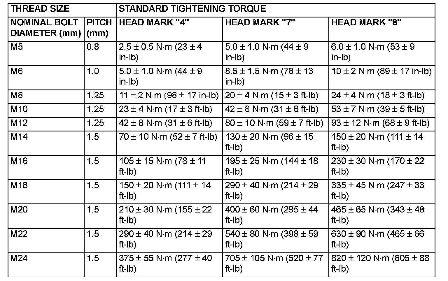 TIGHTENING TORQUEEach torque value in the table is a standard value for tightening under the following conditions.