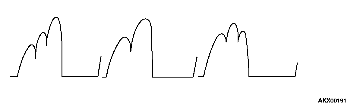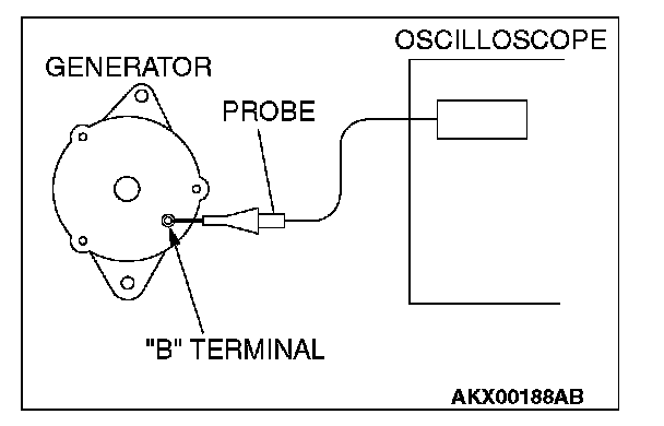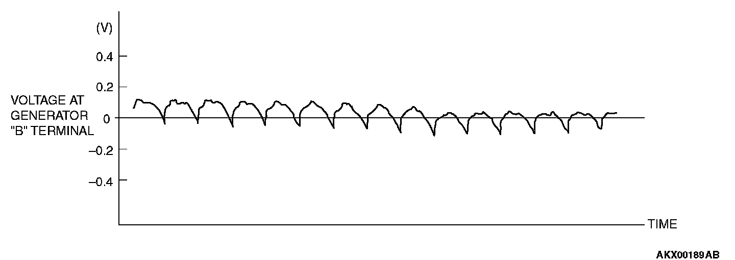 NOTE: Identification of abnormal waveforms is easier when there is a large output current (regulator is not operating). (Waveforms can be observed when the headlights are illuminated.)