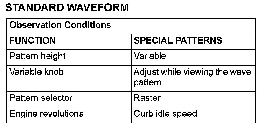 NOTE: The size of the waveform patterns can differ greatly, depending on the adjustment of the variable knob on the oscilloscope.