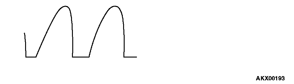 NOTE: The voltage waveform of the generator "B" terminal can undulate as shown at left. This waveform is produced when the regulator operates according to fluctuations in the generator load (current), and is normal for the generator. If the ripple height is abnormally high (approximately 2 V or more during idling), the wires between the generator "B" terminal and the battery have broken due to fuse blowing, etc. The generator is usually operating properly.