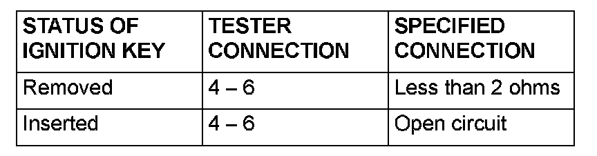 IGNITION KEY RING ANTENNA CONTINUITY CHECK1. Ignition key reminder switch continuity check.