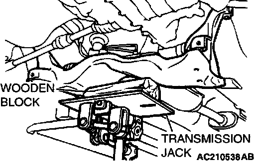 Retain the crossmember with a transmission jack, and then remove the crossmember mounting bolt.