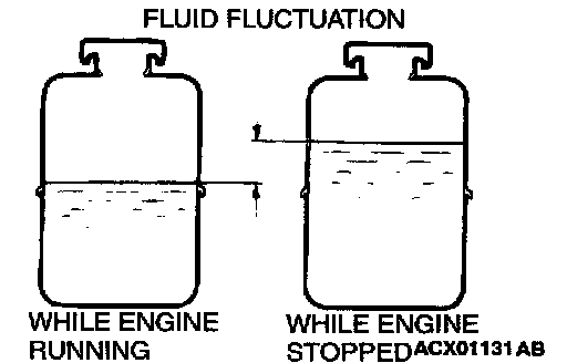 4. Check the fluid in the oil reservoir for foaming or milkiness. Check the difference of the fluid level when the engine is stopped, and while it is running.