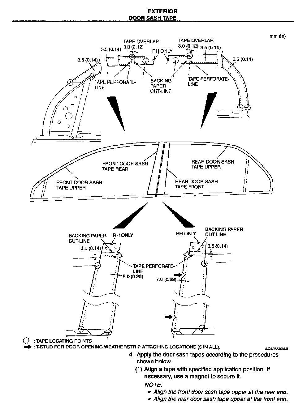 Door sash tape service procedures are missing in the affected service manuals. This bulletin contains door sash tape removal and installation procedures for 2005 Lancer and Lancer Evolution models.