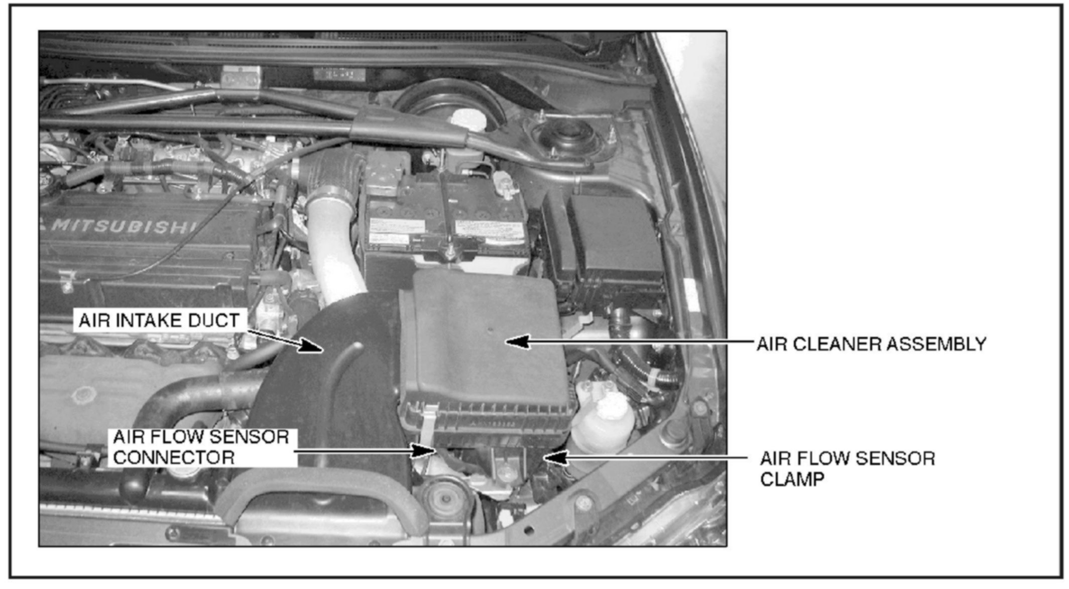 4. Remove the air flow sensor connector and its clamp.