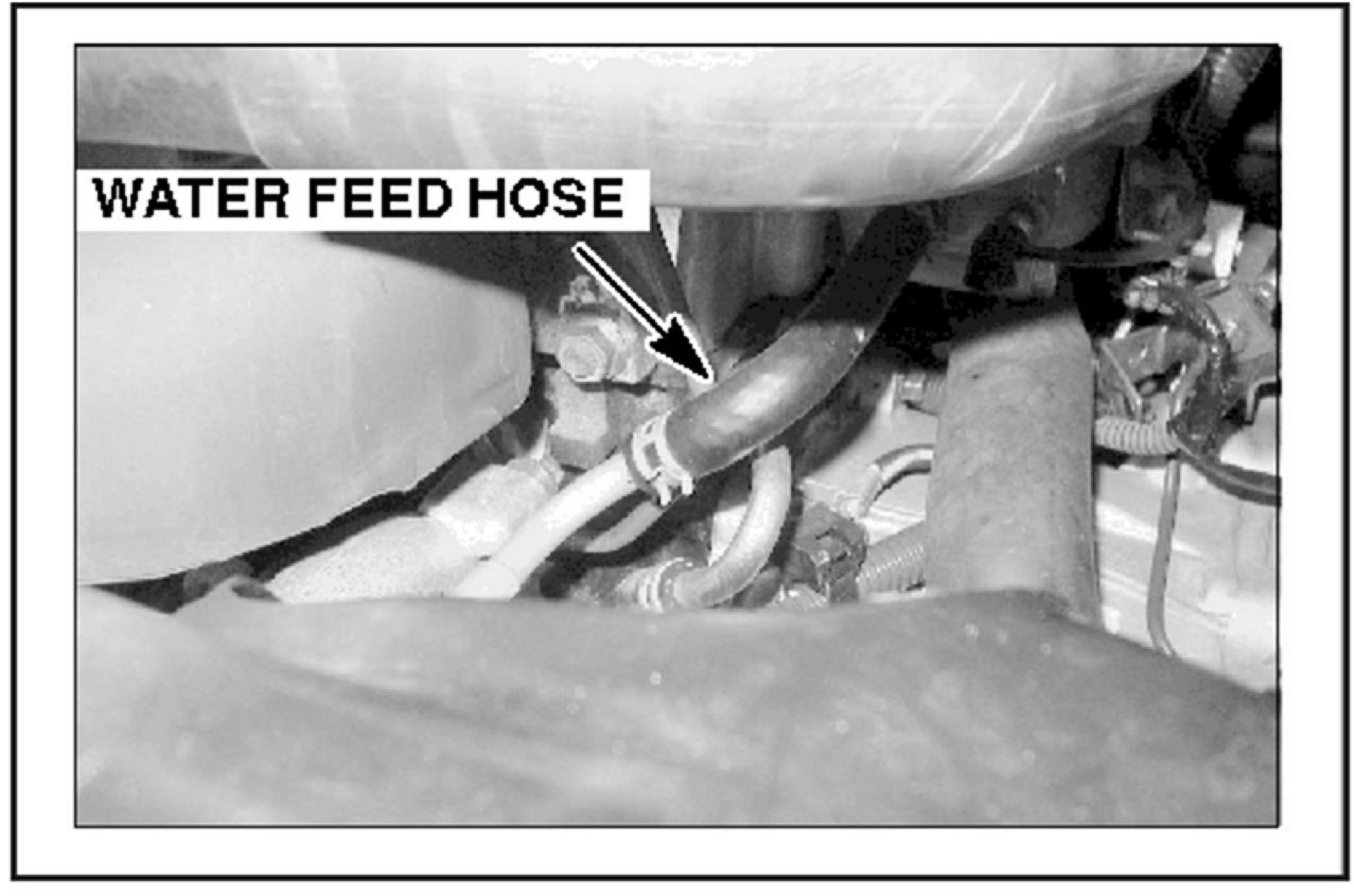 1. Place a metal or plastic receptacle under the vehicle, directly under the water hose area, to collect any spilled coolant.
