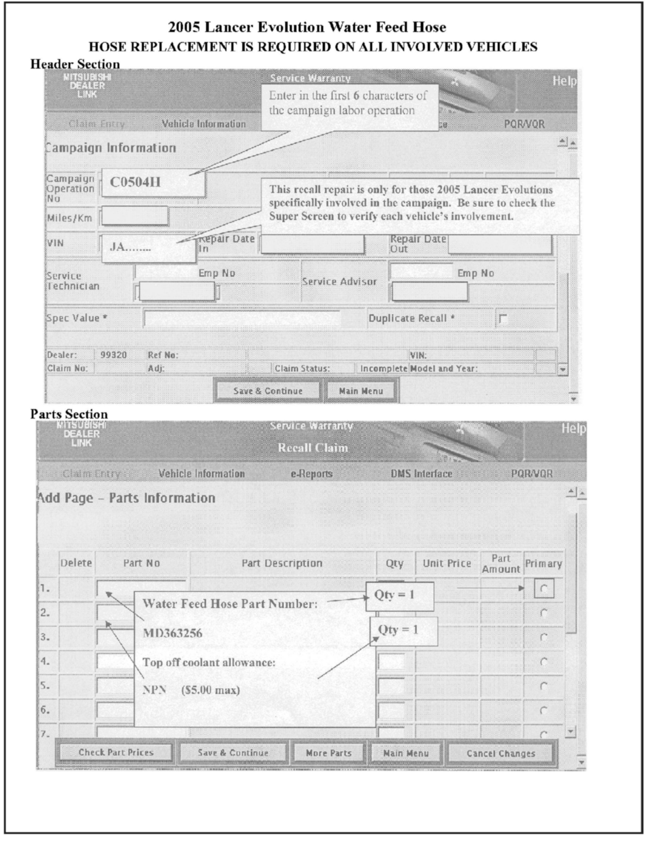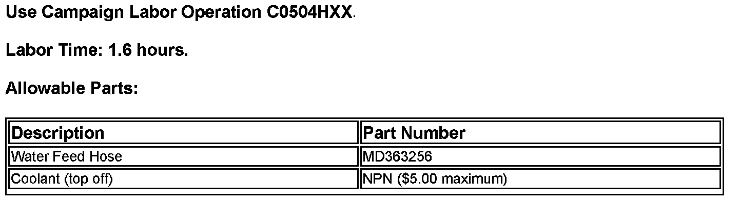 COOLANT HOSE REPLACEMENT - SAFETY RECALL CAMPAIGN